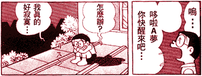 說完,大雄頰上情不自禁流下兩串淚珠。 他就是為了這一刻,苦學了十幾年…… 為了這一刻,從一個老是忘了做作業、成績從倒數起算 比較快的笨學生,爬到今天的地位…… 開關按下後,久久一陣靜寂,靜寂…… 終於,小叮噹開口了: 『大雄,我等你很久了。』 -- The End -- |