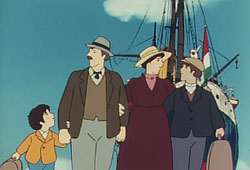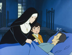 在民國六十六年看《萬里尋母》華視首播的人,現在多應以為人父為人母了。當時,或許不甚理解為什麼馬可的媽媽要遠度重洋,從義大利到阿根廷工作;只是覺得馬可好勇敢,竟敢獨自踏上未知的旅程去尋找媽媽,而自己的勢力範圍只是從巷子口到校門口這段路徑。 《萬里尋母》,這個以「親情」為主軸貫穿全局的卡通,係改編自義大利文學名著【愛的教育CUORE】當中一個篇章。在義大利熱那亞的一個尋常家庭,爸爸是個老實人,因被騙而欠下巨額負債,又一心想幫助無力就醫的窮人,因此立志設一家專為窮人治療的聯合診所。媽媽安娜,是典型的賢妻良母,為了家計與丈夫的志業,忍痛揮別幼子到陌生的異國打工。哥哥東尼奧是一個懂事上進的青年,主人翁馬可也很能體諒家中的處境,九歲稚齡卻志願打工、家務全包,只希望遠方的媽媽無後顧之憂。濃厚的親情使這個家庭緊密團結,大家共同的心願是一起把債務還清,並且實現爸爸的夢想,最重要的,讓媽媽早日回來團聚。小馬可最大的慰藉則是定期船捎來的媽媽的親筆信。有一天,信突然中斷了,馬可擔心不已,毅然決然出發尋母。 移民船漫長的航海、在廣大的阿根廷境內跋涉,對小馬可而言都是艱鉅的挑戰,更何況是現實無情的人間百態。幸好他還有小白猴梅蒂歐這個開心果。所有看過萬里尋母的人都不會忘記牠可愛的模樣,就像「小英的故事」裡的小黃,「金銀島」裡的鸚鵡,「天方夜譚」裡的小飛飛,這些小動物的出現為緊湊的情節製造了輕鬆的效果,牠們也是主人翁在旅程中最忠實可靠的伴侶。 「友情」也是故事裡最動人的元素之一,諸如馬可家鄉鄰居不時的照應、一起結伴扶持的白賓諾木偶劇團、還有更多更多在旅程中相遇「同是天涯淪落人」的惺惺相惜,讓馬可屢挫屢起,儘管途中被無恥之徒騙得一文不剩,或者飽受餐風露宿之苦,他都能安然度過;善良的馬可一路上甚至還對處境比自己可憐的人伸出援手,高貴的人性光明面展露無遺。 幸好,一切的辛苦有了甜美的報酬。馬可找到生病的媽媽,待媽媽病癒後一起搭船返回義大利。可以想見的,回家鄉後,儘管日子還是一番和現實的纏鬥,但對一個母親而言,莫大的幸福就是守候在孩子身旁,對一個孩子而言,媽媽溫暖的臂彎是無可取代的避風港。 或許已經更成熟、或為人父、為人母的你,重新看到這個故事時,會有更多的感觸。廿五年過去了,我們的環境變得很複雜、每個世代之間的價值觀多有扞格不入之處、每個世代也都在努力尋找自己的定位點。太多飽食終日、言不及義;太多渾渾噩噩、無所適從。或許那被遺忘了的單純,才是開啟幸福之門的鑰匙。單純的善意、付出、單純的愛;當然,還有一點傻氣的堅持。 詞/曲:汪石泉 主唱:紀寶如 我要你媽媽 我想你媽媽 你在那好遠好遠的地方 可知道你的孩子在想你∼媽媽 不管海多大 不管路多長 媽媽不管你在何方 不怕烈日曬 不怕風砂狂 媽媽不管你在何方 我要你媽媽 我想你媽媽 你在那好遠好遠的地方 可知道你的孩子在想你∼媽媽 |
