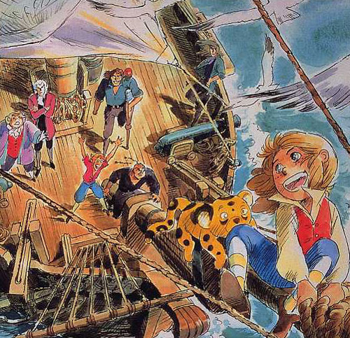 Treasure Island-「金銀島」是十九世紀出生在英國蘇格蘭愛丁堡,著名的文學作家史蒂文生最暢銷的小說之一。 故事的主人翁吉姆,是一個十歲大的小男孩,吉姆的父母在黑山海灣旁經營一家旅館名為「本鮑上將」。有一天,旅館來了一位臉上帶著刀疤、身材高大結實、非常引人注目的客人,原來他就是比爾船長。 吉姆非常喜歡聽比爾船長講故事,那些聽起來挺嚇人的經歷,像是罪犯被處以絞刑、海盜雙手被綁而且矇眼走跳板、突如其來的海上大風暴、遍地骨骸的西班牙海盜巢穴等,每次都讓吉姆又愛又怕,也讓寧靜的小鎮增添了不少新鮮刺激的話題。 沒多久,比爾船長因為飲酒過量加上受到驚嚇而死在旅館中,吉姆無意間發現比爾身上帶著的一張藏寶圖,那是海盜普林特船長所遺留下的,於是吉姆和一群人的金銀島尋寶的故事就此展開。 心懷不軌的海盜們喬裝成一般的水手,當中還包括陰森詭譎的獨腳水手西爾弗。大夥兒假裝跟著吉姆和利弗希醫生一起去尋寶,航海的過程中,充滿了千辛萬苦和千奇百怪的事。不僅發生了足以讓人喪命的瘧疾病亂,還曾經發生海盜們群體叛亂的恐怖事件。 驚濤駭浪中,到底吉姆一行人最後有沒有找到傳聞中那座遍地滿是黃金寶藏的金銀島呢?他們又是否能平安地帶著寶物歸來呢?而獨腳水手西爾弗又會在緊要關頭使出什麼陰謀詭計呢? 充滿冒險樂趣、驚心動魄、精彩生動的金銀島,絕對讓你有高潮迭起、意想不到的深刻體驗! 勇敢的孩子 乘風破浪去找 夢裡的金銀島 在那夢裡的世界 充滿希望 我們要去尋找它 充滿信心 一片真誠 為了理想 不怕困難 勇敢的孩子 乘風破浪去找 夢裡的理想 金銀島 |