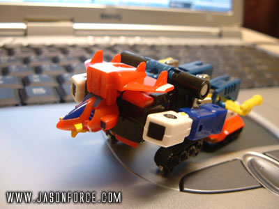 頭部是一號噴射機、雙臂是二號運輸機、上半身是三號重型戰車、